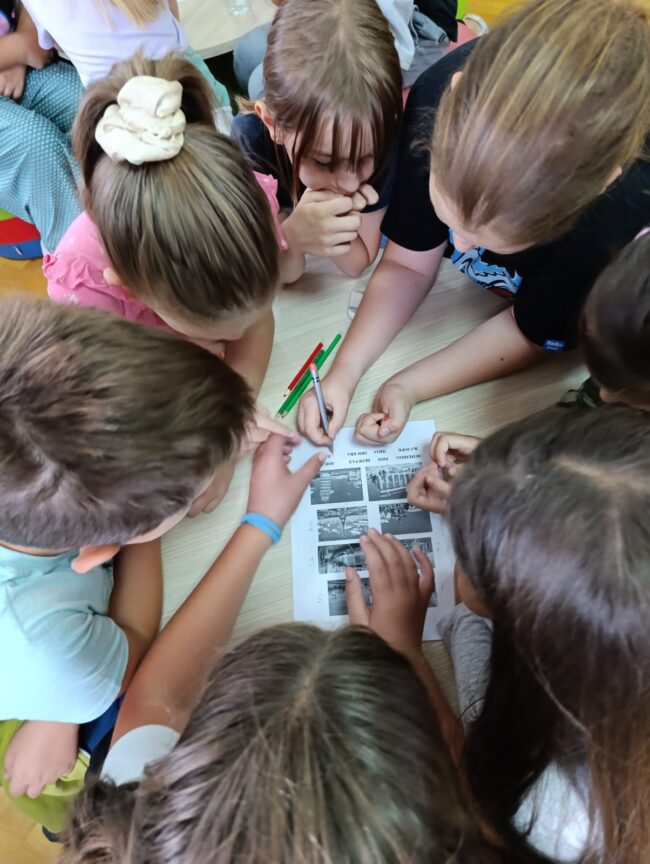 Друга по реду летња дружионица Другу по реду летњу дружионицу започели смо игром „Испричај причу помоћу слика“, у којој су деца показала маштовитост стварајући необичне приче инспирисане илустрацијама. Затим смо пропутовали цео свет кроз едукативну игру „Повежи град са његовим именом“, у којој смо помоћу карата и разгледница учили географију. Посебно одушевљење изазвала је тимска…