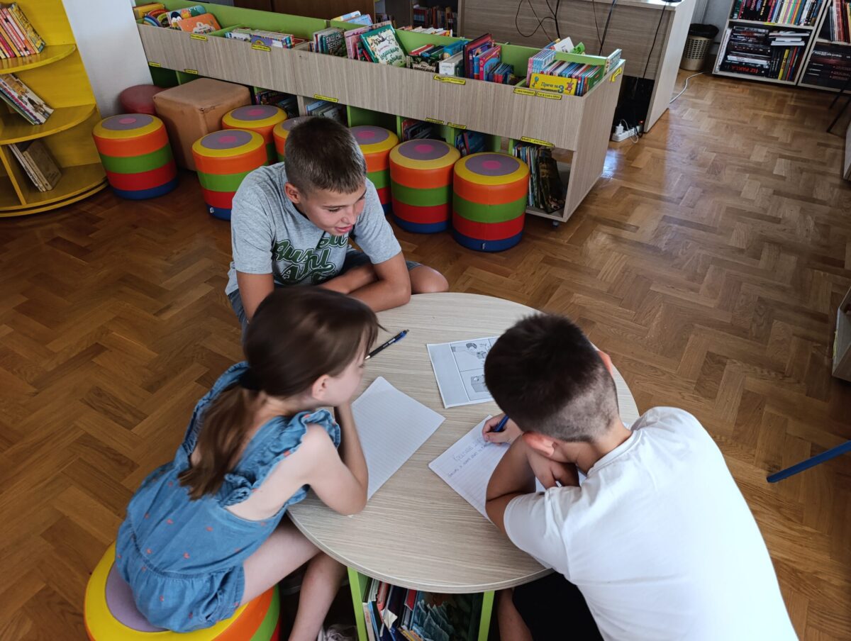 Мали библиотекари били су у улози малих писаца, те су састављали приче на основу слика. Уживали смо заједно у чарима библиотечког посла. Наши полазници нестрпљиво очекују следећи четвртак а ми се радујемо сваком новом дружењу. 🙂